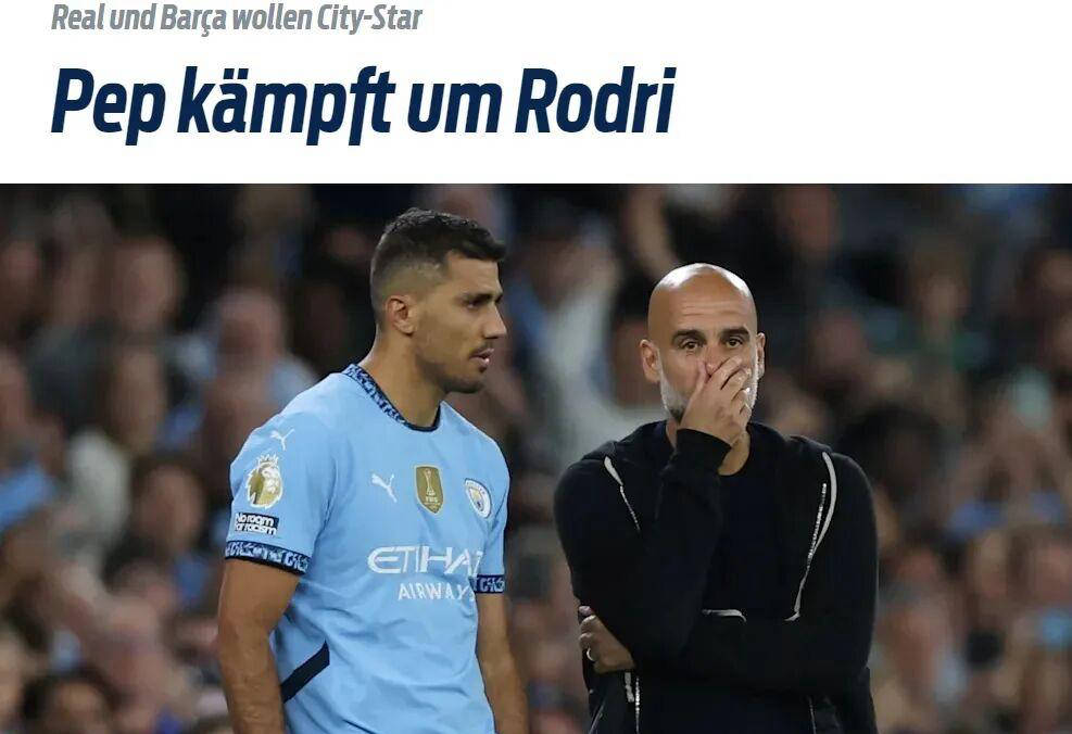 根据德国体育图片报报道,曼城面临今夏保卫罗德里的严峻挑战,西甲豪门皇家马德里和巴塞罗那都对这位29岁的中场核心产生浓厚兴趣。罗德里目前与曼城的合同将于2027年到期,但过去一年多以来,他饱受伤病困扰,出场时间受限。有消息称,如果有合适的报价,这位西班牙国脚极有可能在今夏离开英超,重返西甲赛场。而皇马及巴萨正积极关注这一动态,准备展开激烈角逐。